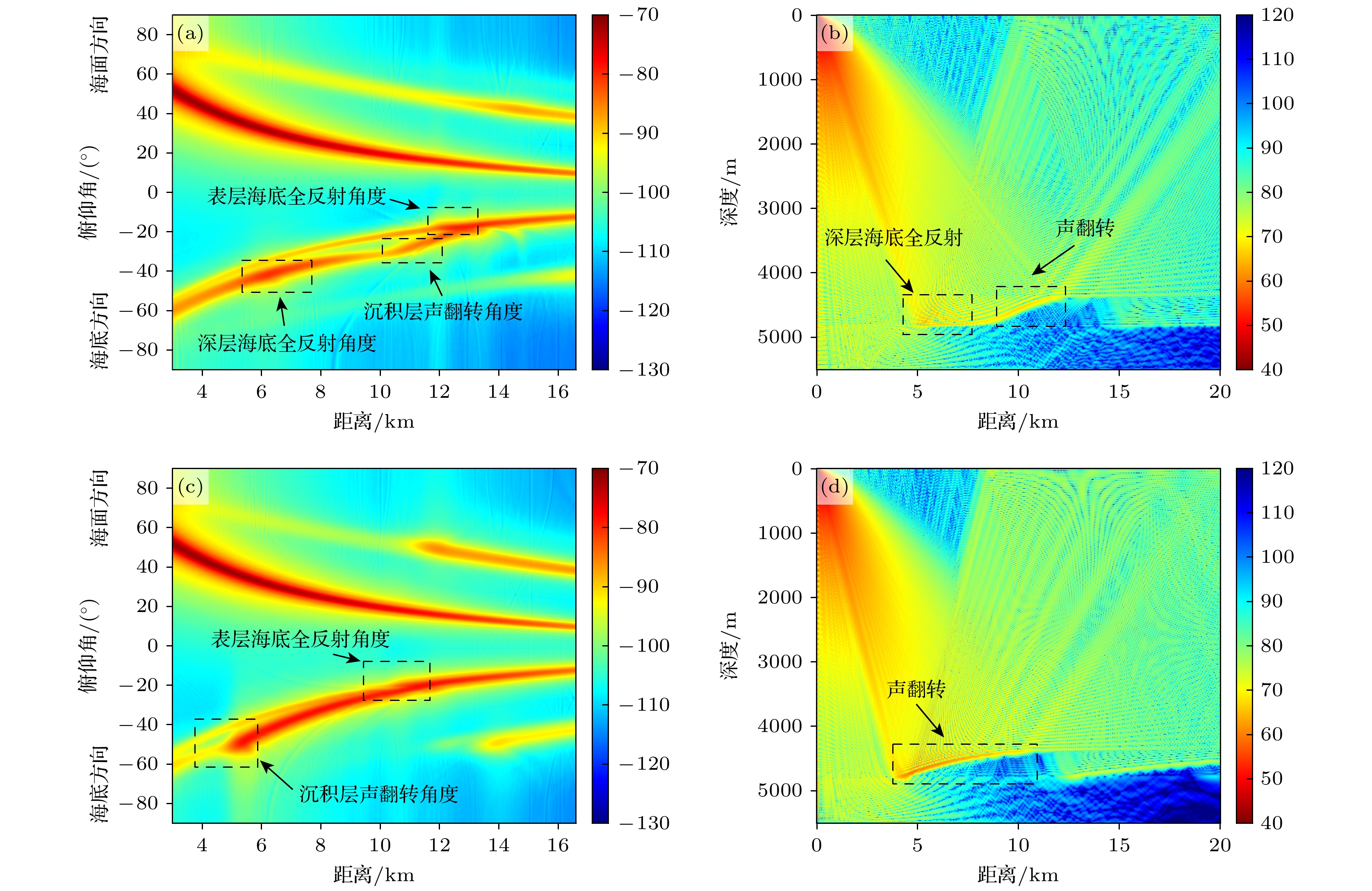 Very-low-frequency (VLF) (≤100 Hz) acoustic waves exhibit special propagation characteristics in the deep sea, owing to strong penetration capability and interaction with deep geological structures. In a deep sea experiment conducted in the South China Sea, a vertical linear array including 64 elements is moored to the bottom (approximately 4360 m depth) to receive the acoustic signal. In the bearing-time record (BTR) processed by beamforming, a high-energy bottom bounce path is observed from the ship noise received by the bottom-moored vertical linear array, which shows an abrupt increase in energy near a grazing angle of 45°. However, the physical mechanism causing this phenomenon is still unclear, and we investigate it further in this work. According to the data processing, we develop an environmental model of the seabed by combining continuous speed gradient, which arises from long-term geological compaction processes, in the sediment. This model is compared with a traditional stratified model under the assumption of a uniform sediment layer. The wavenumber integration method is adopted in numerical simulation to accurately calculate the pressure field and analyze the cross-media propagation. The numerical simulations show that the positive velocity gradient (increasing from 1600 m/s to 2144 m/s) causes an ‘acoustic turning’ effect, which reradiates substantial acoustic energy back into the water column and generates the observed high-energy bounce paths. This is supported by theoretical analysis in the WKB approximation, where the calculated reflection coefficient shows a sharp transition in the acoustic turning point, explaining the energy fluctuations observed in the experimental BTR. Further analysis shows that the thickness of sediment influences the angular separation between bottom bounce paths, while its sound speed structure determines the turning angle. These findings offer new insights into VLF acoustic propagation in the deep sea and also provide critical evidence for supporting a transition from simplified stratified models to a more realistic model with a continuous gradient structure. Furthermore, the discovery of high-energy bottom bounce paths provides a new way for enhancing the capabilities of underwater detection, and these observed features also provide reliable pressure field characteristics for inverting deep seabed parameters.