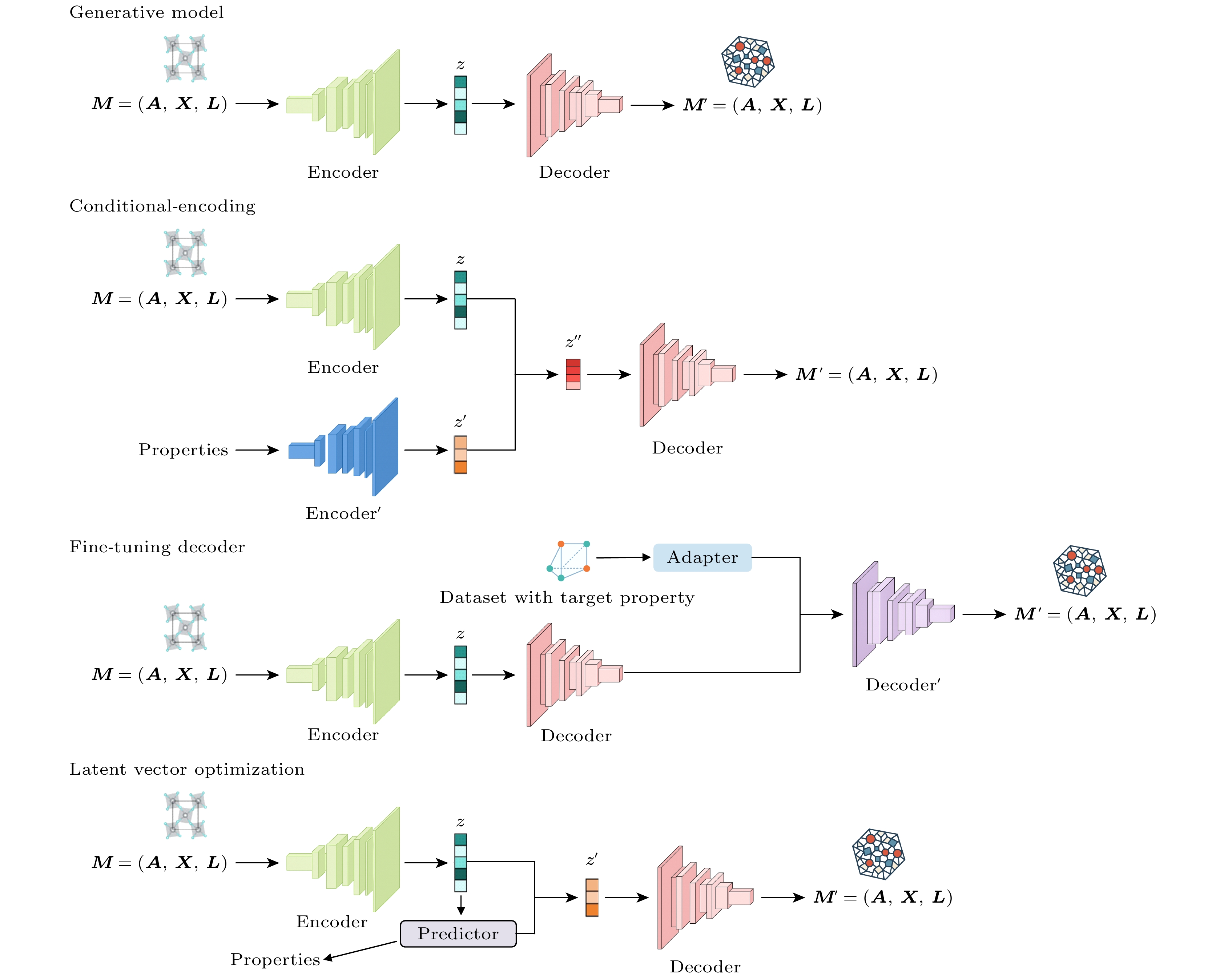 In recent years, the application of machine learning in materials science has significantly accelerated the discovery of new materials. In particular, when combined with traditional methods such as first-principles calculations, machine learning models have proven effective in screening potential high-performance materials from existing databases. However, these methods are largely limited by the known chemical spaces, making it difficult to achieve the active design of novel material structures. To overcome this limitation, generative models have become a promising tool for inverse material design, providing new avenues for exploring unknown structures and property spaces. Although existing generative models have achieved initial progress in crystal structure generation, achieving property-guided material generation remains a significant challenge. In this review paper, we first introduce the representative generative models recently applied to materials generation, including CDVAE, MatGAN, and MatterGen, and analyzes their basic abilities and limitations in structural generation. We then focus on strategies for incorporating target properties into generative models to generate the property-guided structure. Specifically, we discuss four representative methods: Con-CDVAE based on target property vectors, SCIGEN with integrated structural constraints and guidance mechanisms, a fine-tuned version of MatterGen leveraging adapter-based property control, and a CDVAE latent space optimization strategy guided by property objectives. Finally, we summarize the key challenges faced by property-guided generative models and provide an outlook on future research directions. This review aims to offer researchers a systematic reference and inspiration for advancing property-driven generative approaches in material design and provides researchers with a systematic reference and insight into the advancement of property-driven generative methods for materials design.